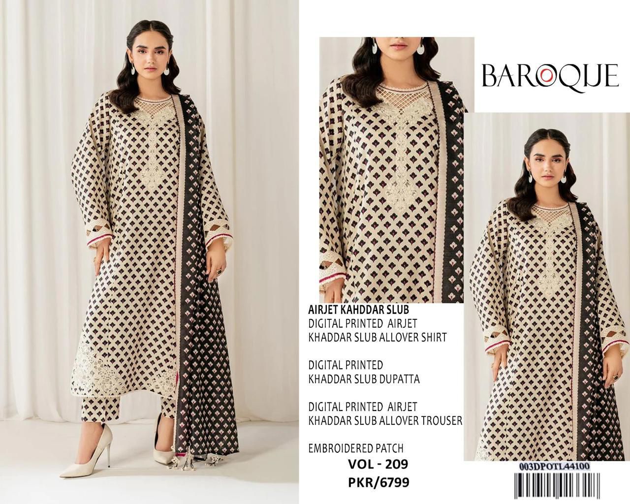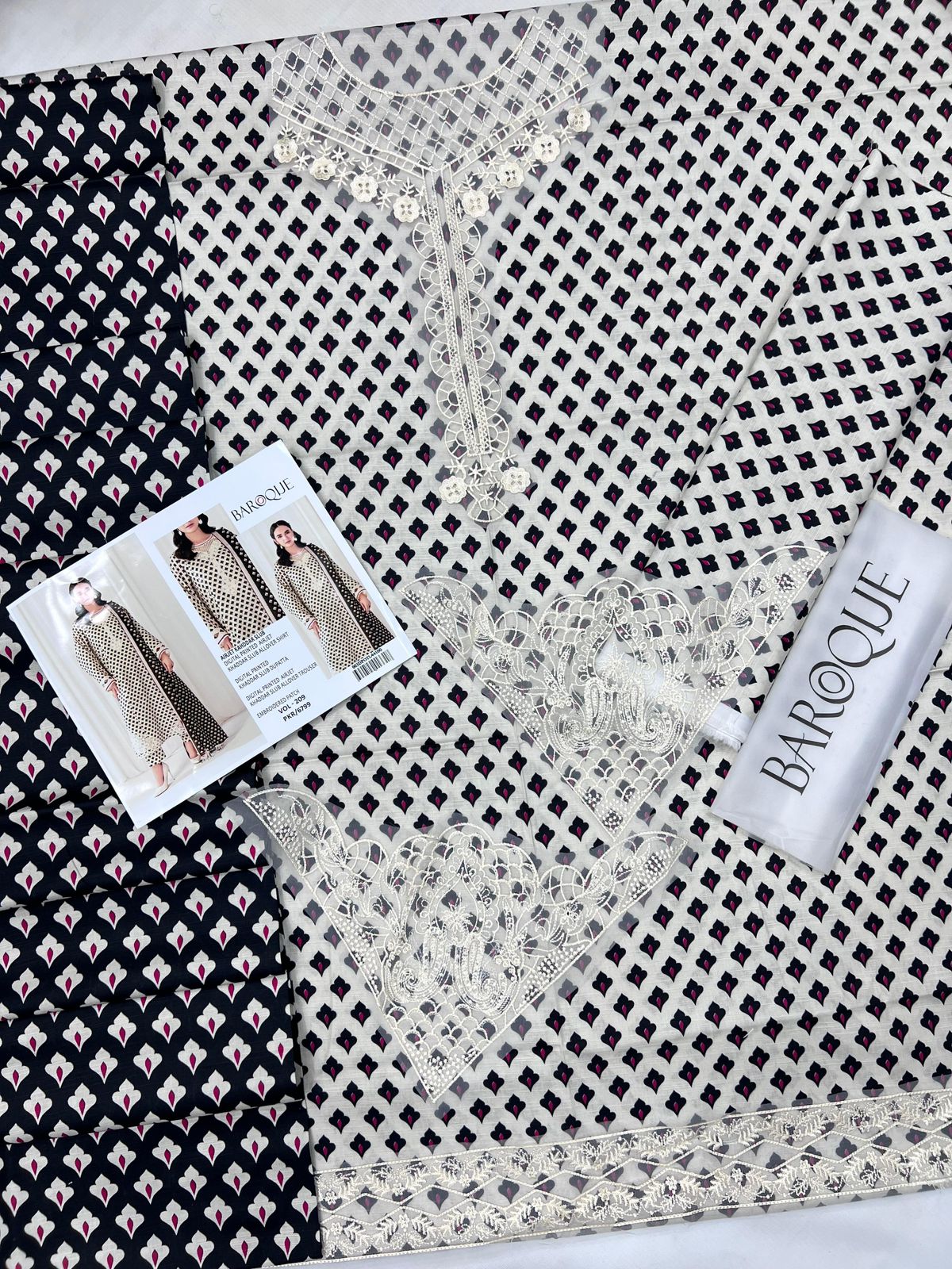 Make a chic, contemporary statement with this sophisticated Baroque Airjet Khaddar Slub suit 🔳🖤. Designed for the modern woman who appreciates geometric patterns and timeless black-and-cream contrast ✨🤍.